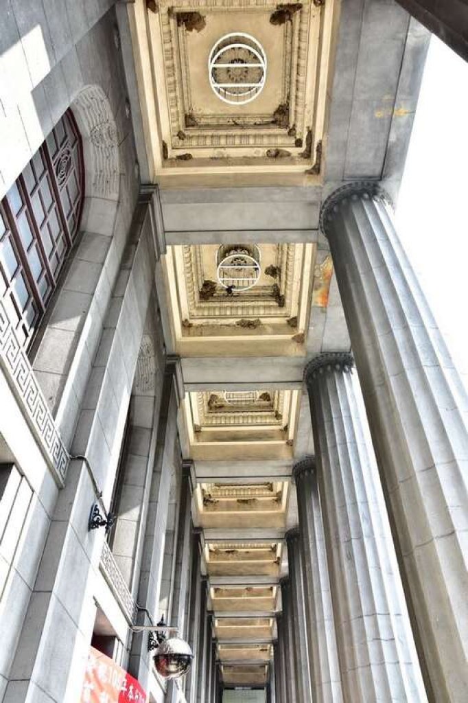 中正路與忠義路口的兩大亮點,一是林百貨,另一個就是有如神殿般造型的土地銀行了,日治時代稱為勸業銀行,勸業在日文中有提倡實業,獎勵產業的意義,外觀建築風格非常獨特,採用希臘神殿式的圓柱,整齊排列在兩側,主體建築有如一個等邊三角形般的屹立著,給人非常沉穩的感覺,遊客時常由林百貨的頂樓拍攝土地銀行壯觀的全貌,許多市區導覽活動也都會帶到此處欣賞建築的工藝,高聳的外廊天花板上是許多燕子築巢的地方,來到這裡抬頭觀望壯觀柱體時,也會看見燕子來回哺育幼子的畫面,是土地銀行非常趣味的一幕。
